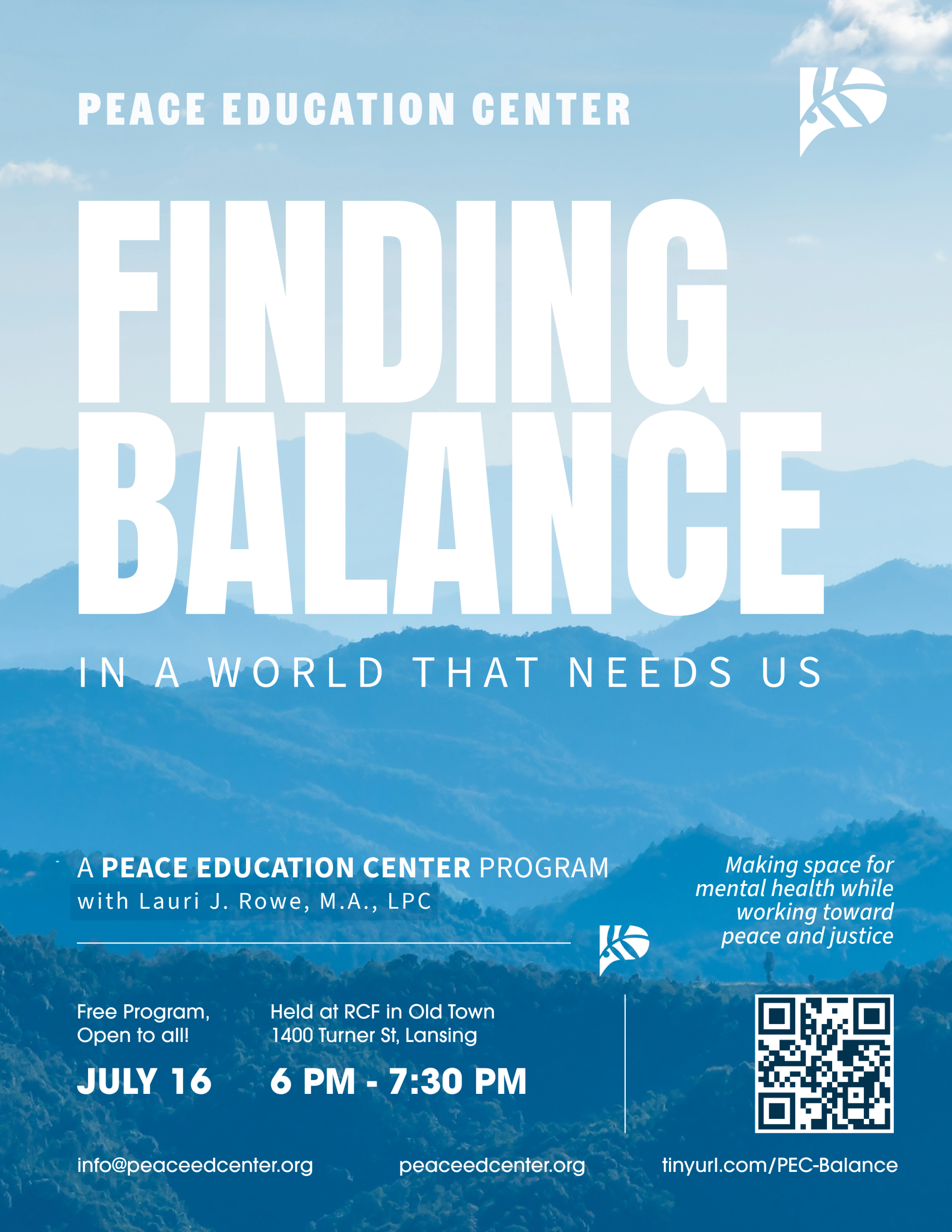 As we stay informed and involved in issues of peace and justice in our communities and around the world, it can start to feel overwhelming. The constant stream of news, need, and crisis can take a real toll on our mental and emotional balance.